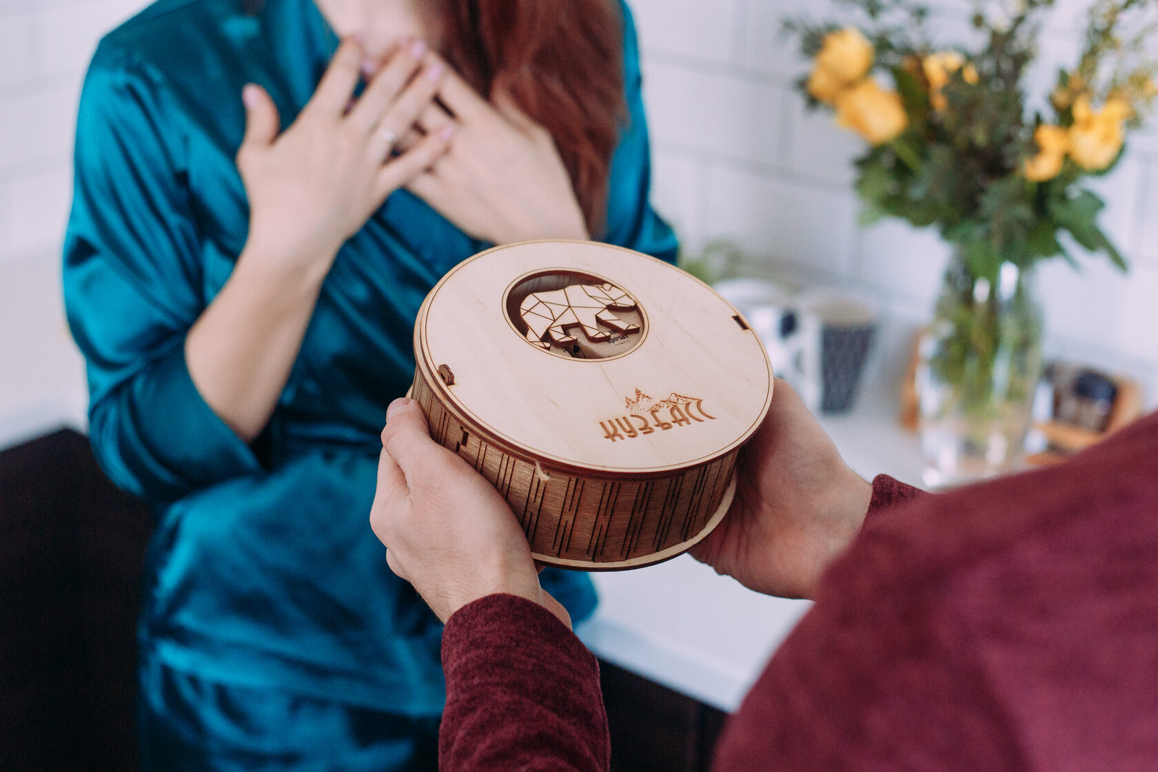 Деревянные шкатулки с логотипом и слоганом вашей компании, картонные коробки со стильным дизайном.